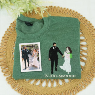 Custom embroidered wedding hoodies and sweatshirts featuring personalized couple portraits created from your photo. Made from premium soft fabric with detailed embroidery, these matching sweatshirts offer a stylish and heartfelt way to celebrate your special day. Perfect for weddings, anniversaries, or couple gifts, this custom embroidered sweatshirt set is both comfortable and meaningful. Order your personalized wedding hoodie and sweatshirt today for a unique keepsake.